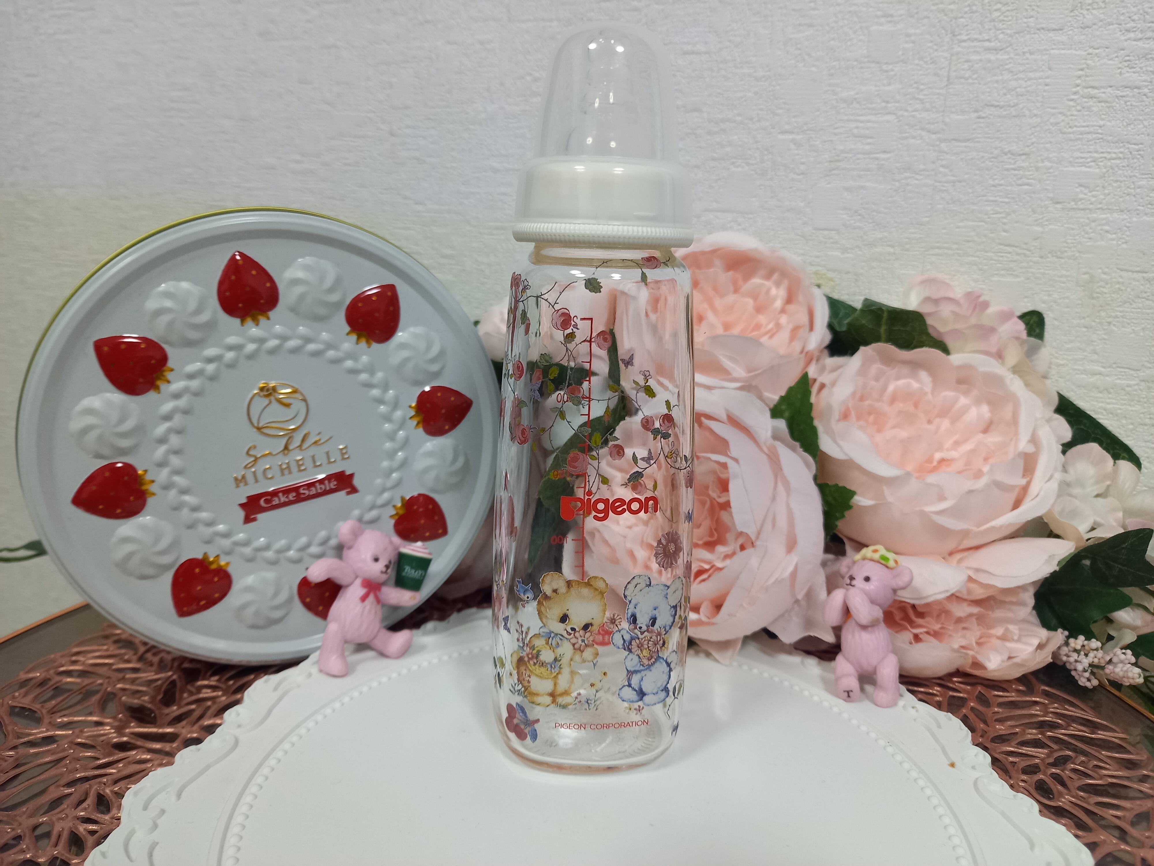 ●耐熱ガラス製の「ピジョン スリムタイプ哺乳びん」です。