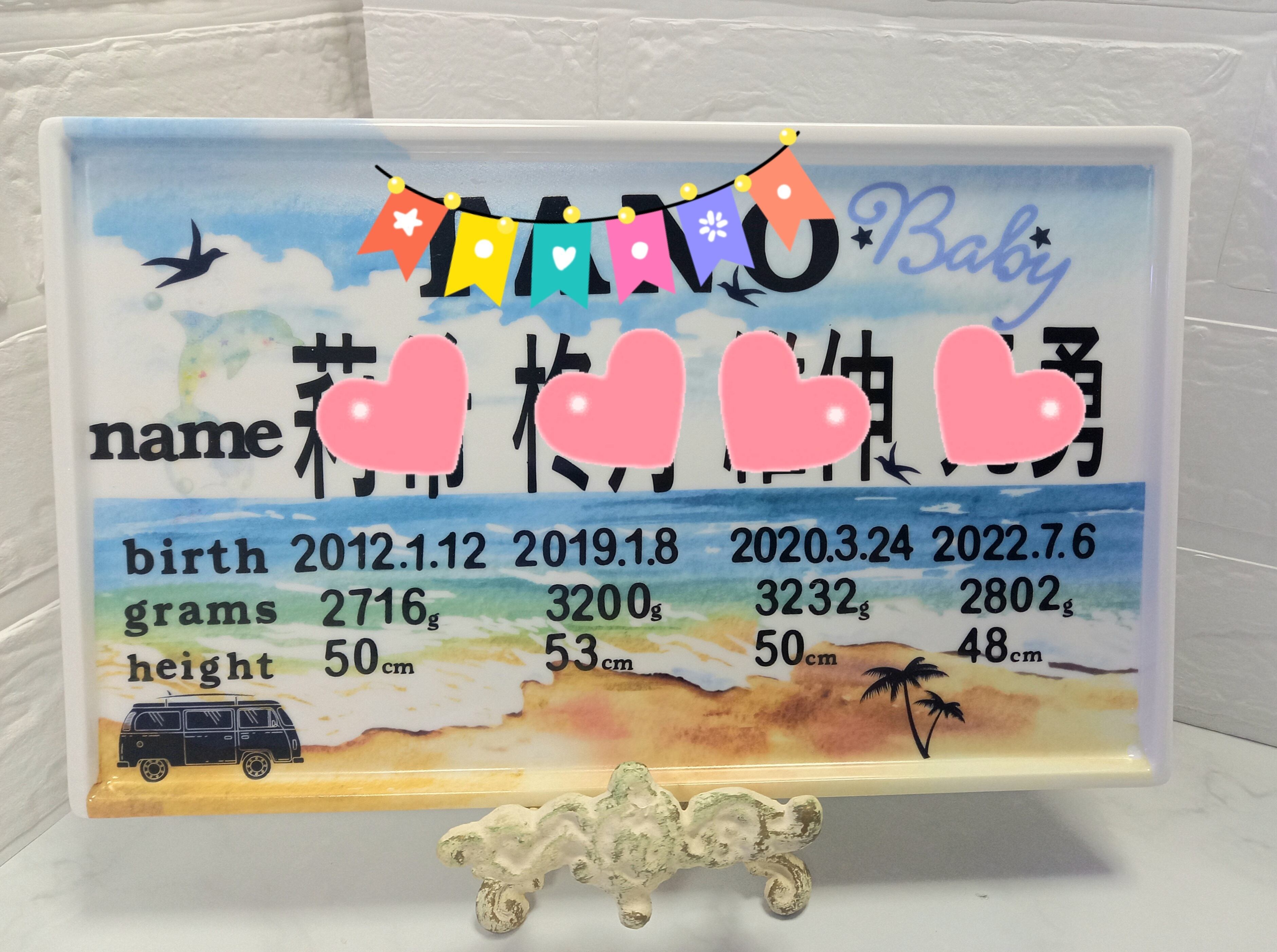 子供の出産の時の記録をプレートに作りました。